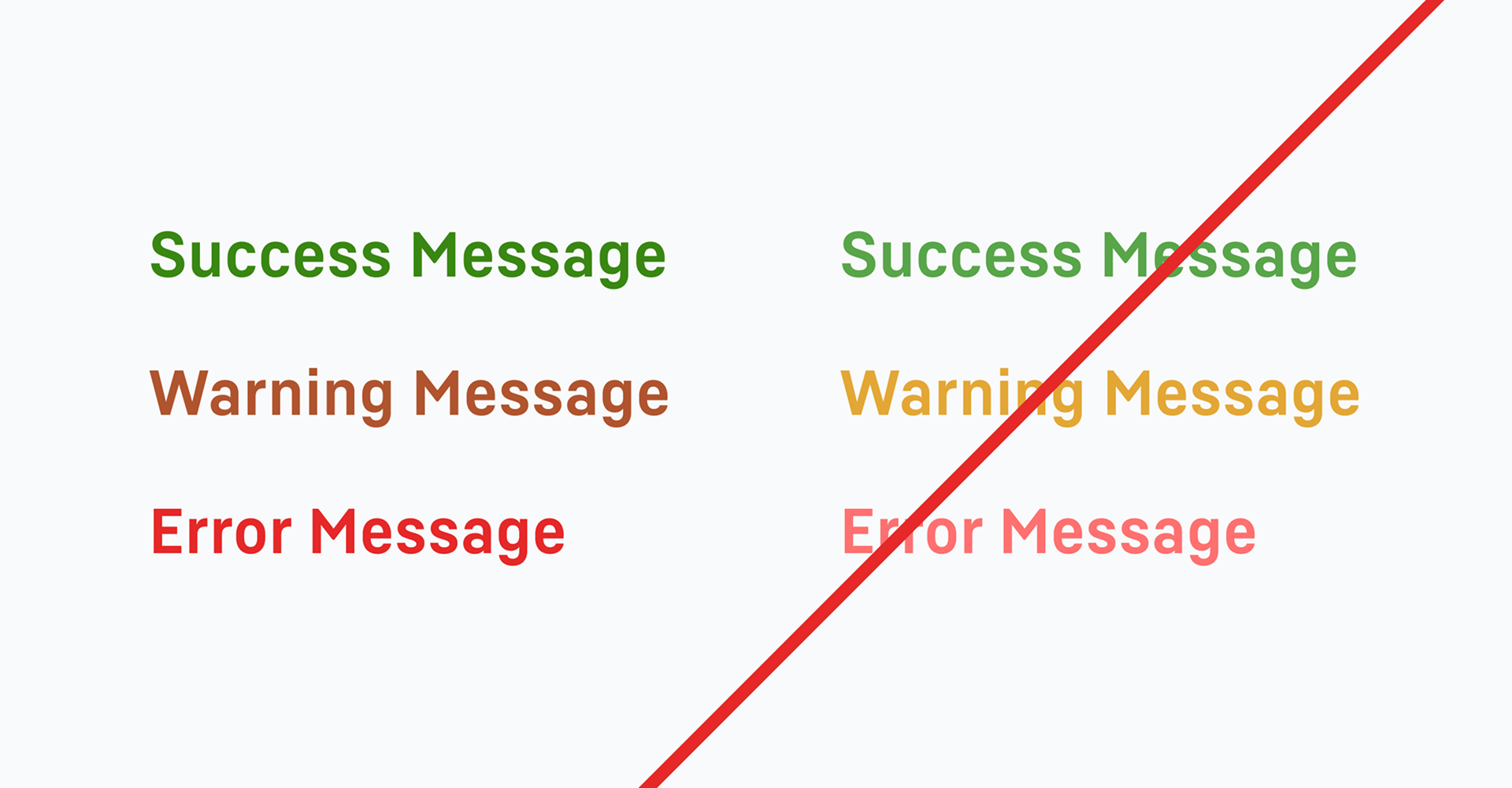 Ausschließlich für Erfolgs-, Warn- oder Fehlermeldungen darf Text in den Funktionsfarben gesetzt werden.