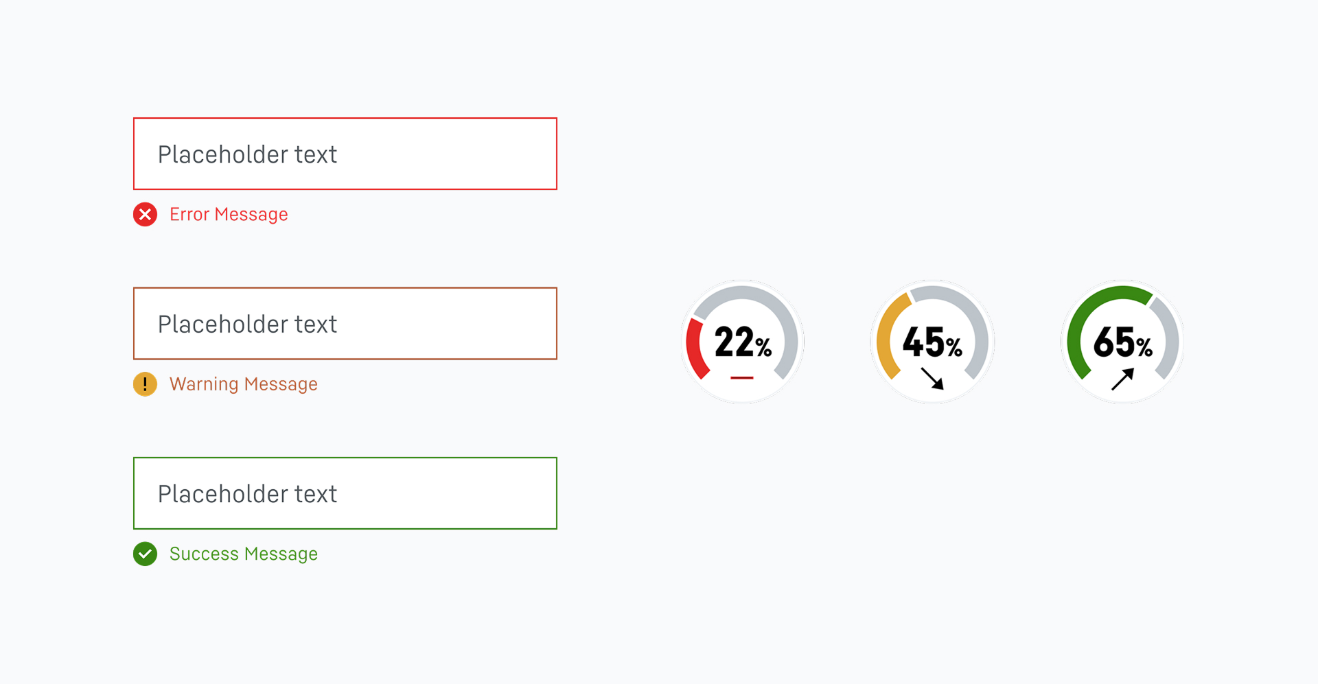 Im User Interface werden die Liebherr-Funktionsfarben eingesetzt, um „Erfolg“, „Warnung“ und „Fehler“ anzuzeigen. Aber auch Systemrückmeldungen, die beispielsweise einen Füllstand anzeigen, müssen mit den Funktionsfarben dargestellt werden.