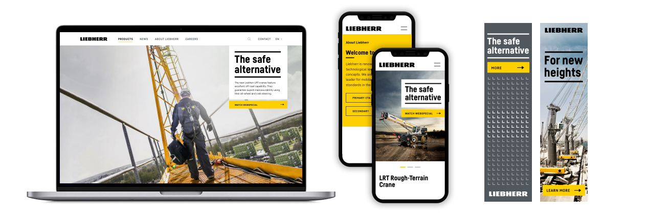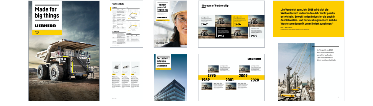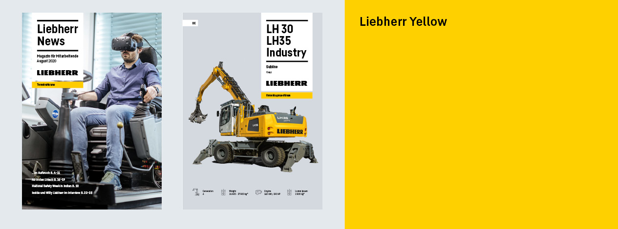 Die Markenfarbe Liebherr Yellow setzt über alle Medien hinweg den entscheidenden Akzent zur Identifikation unserer Marke. Selbst sparsam eingesetzt macht sie Liebherr klar erkennbar.