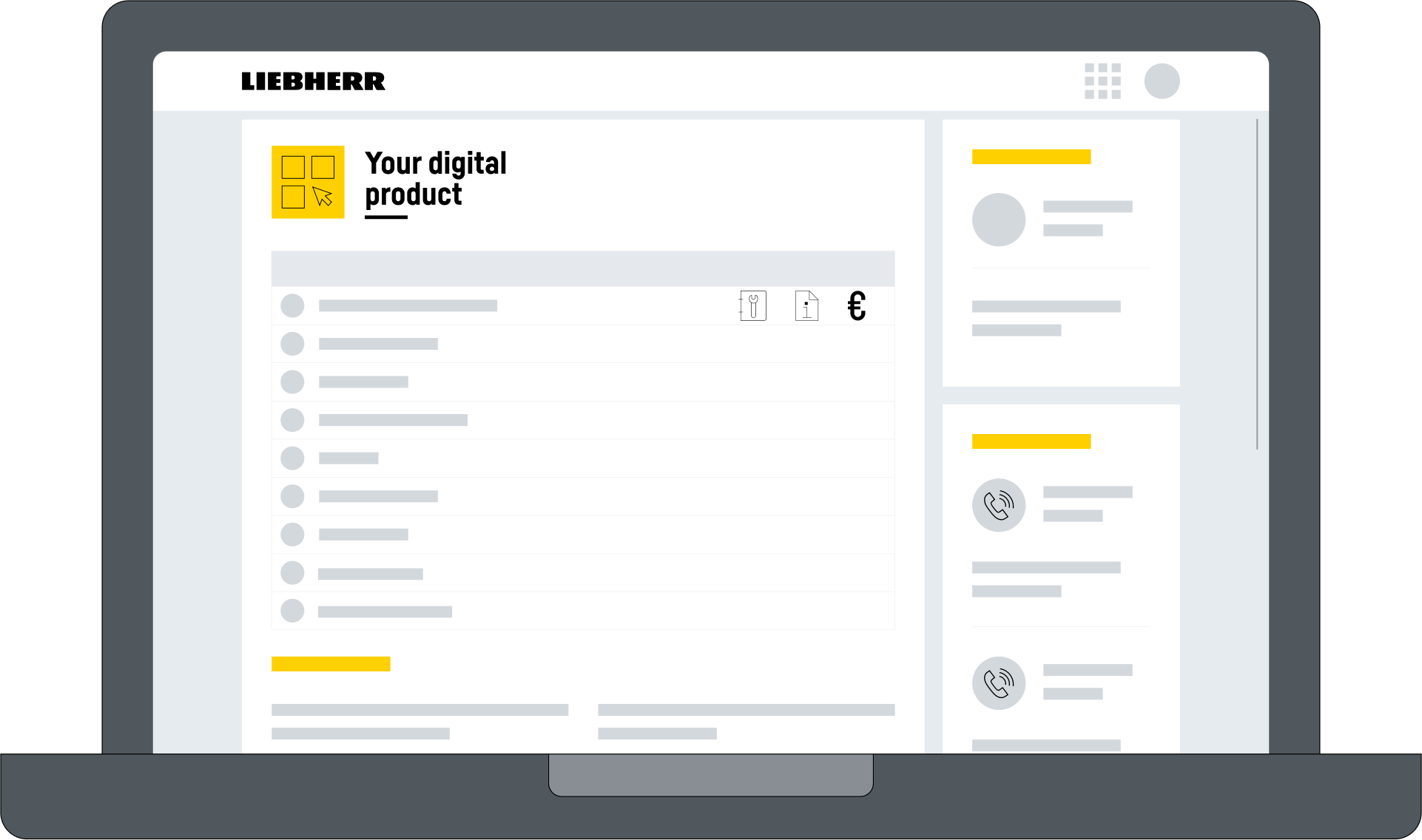 Since a portal can serve as a working aid for both Liebherr employees and service providers, there should be a registration process for it to be used in full. The registered user is provided with a wide range of specific information and customisable functions. Therefore, the focus of a portal’s user interface is on a compact visualisation with as much information content as possible within a view window. Unlike Liebherr websites, portals generally don’t have a space with a large image and brand banner and work with smaller image sizes in the content area as well as smaller spacing and headline sizes. Portals can have page navigation that can be expanded or collapsed as required. These modules and specifications can be found in the Pattern Library.